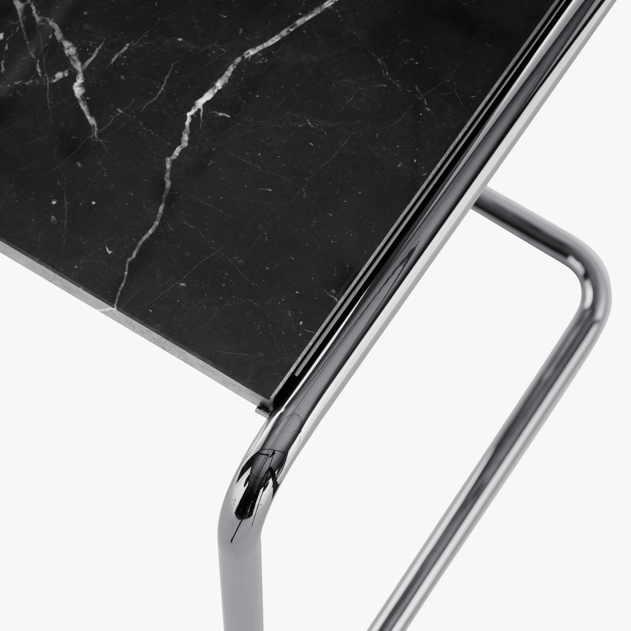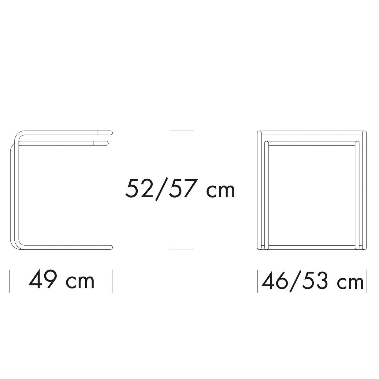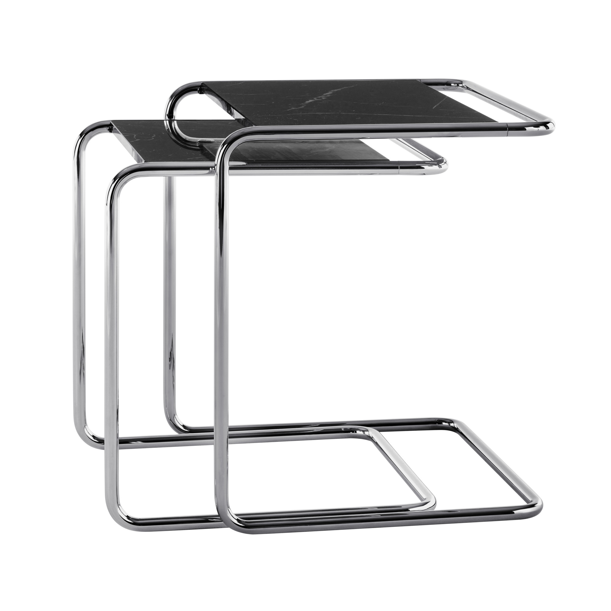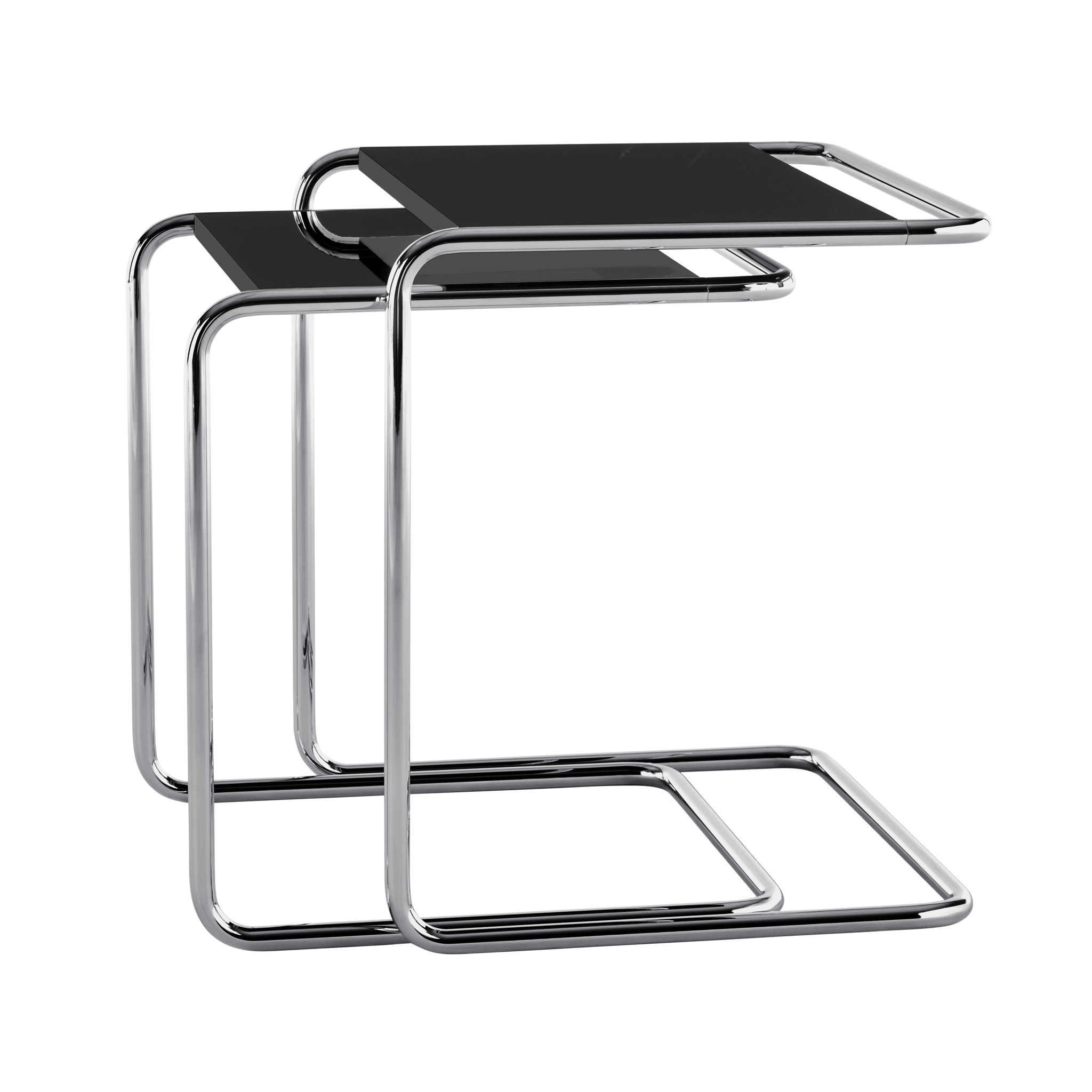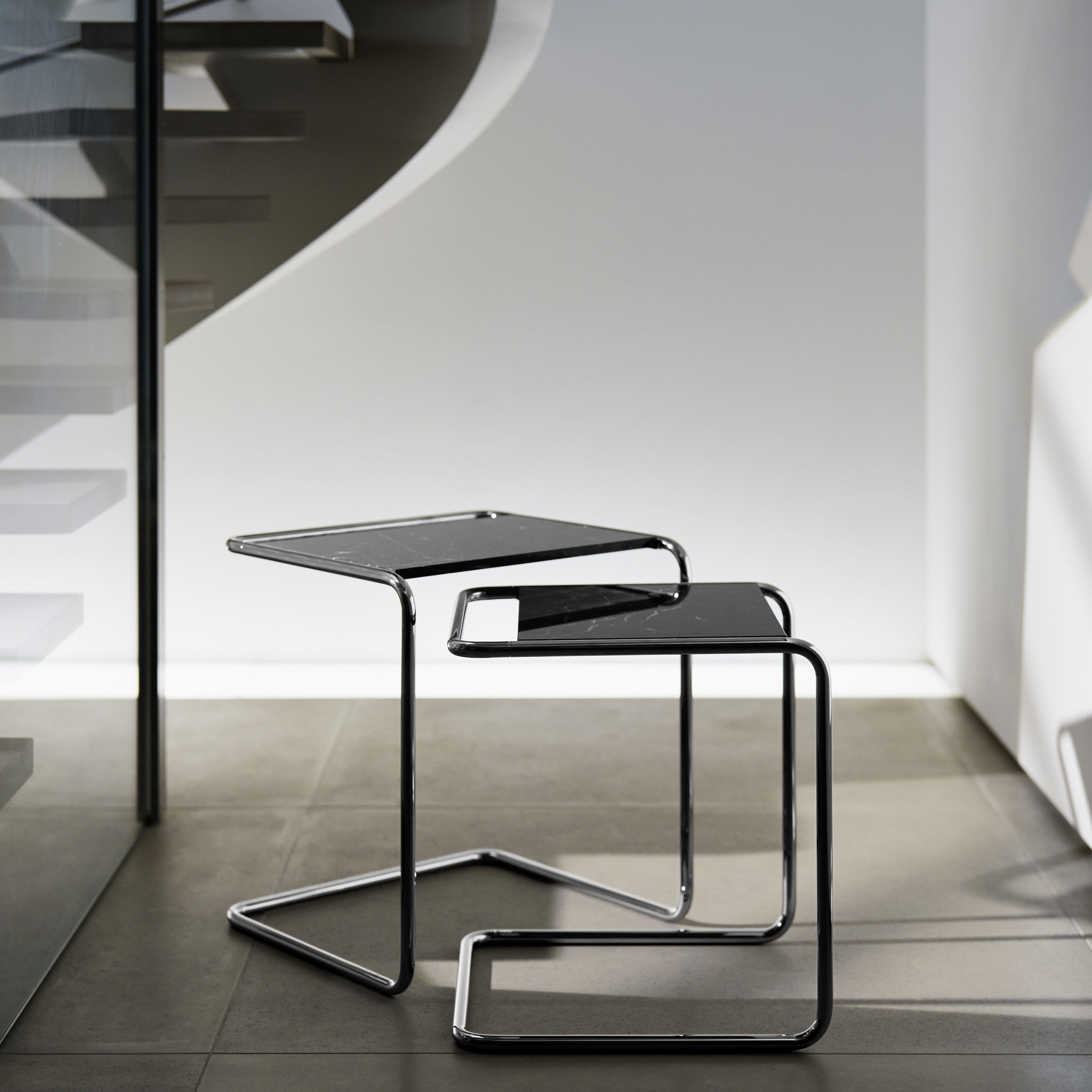 The B 97 tables are designed to partially slide under sofas or beds, providing space-saving versatility. Their staggered heights and symmetrical form make them ideal as occasional tables or sculptural accents. The SERIOUS Edition highlights this original logic with minimalist discipline and modern surface treatments.