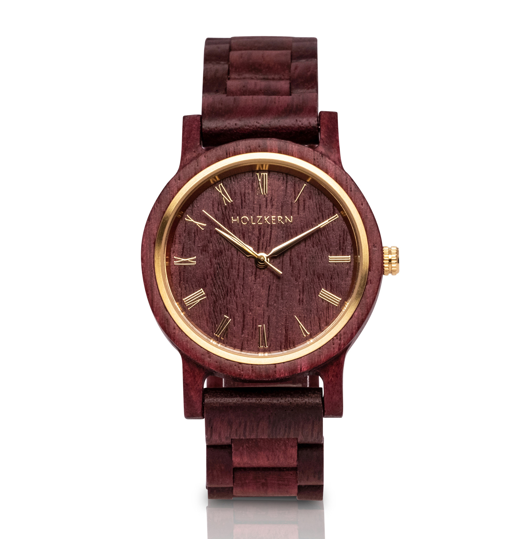 Gelassenheit captures calm and elegance in a handcrafted Amaranth wood watch, uniquely blending nature and style.