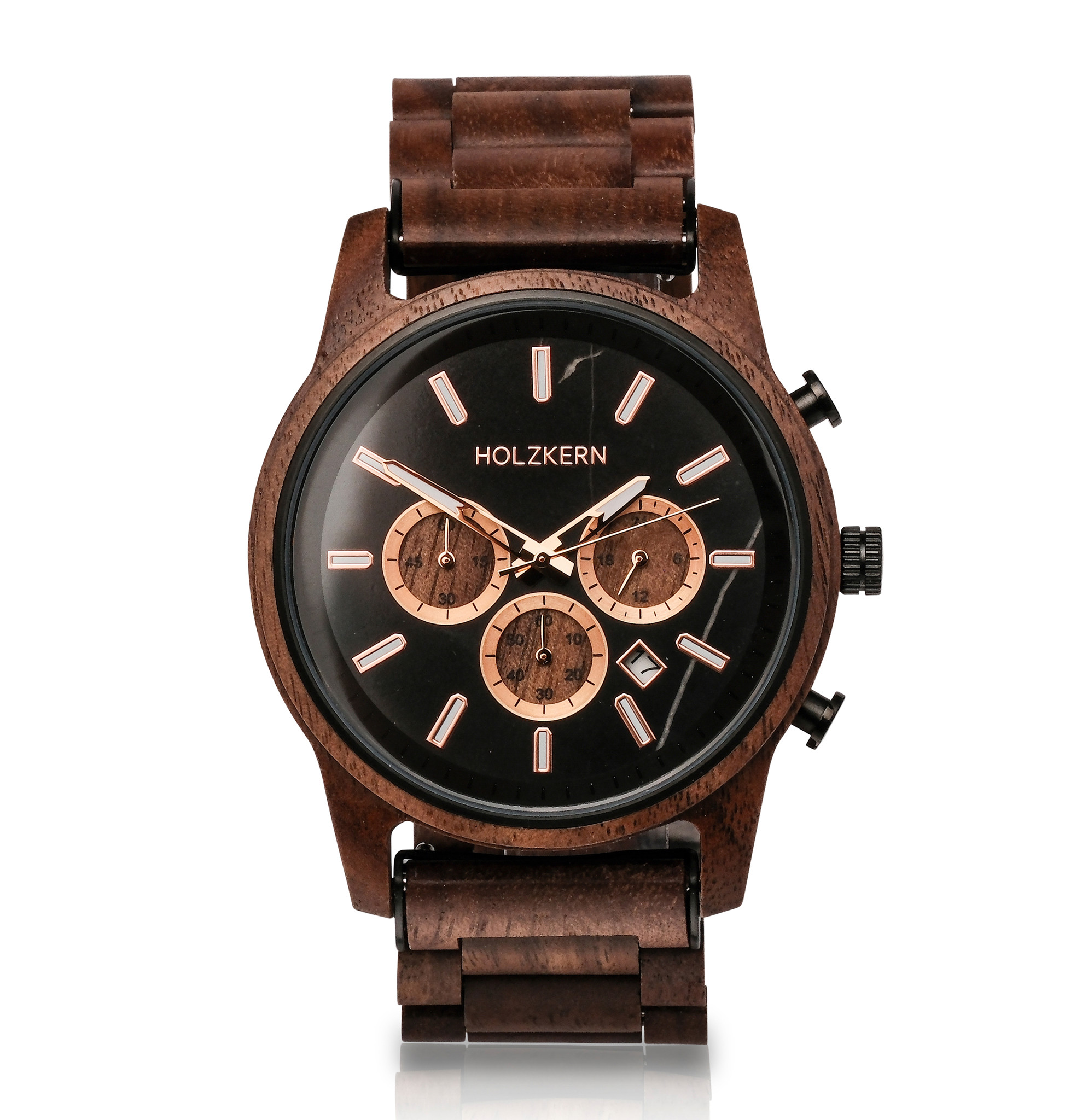 The Buschwerk combines black marble and walnut wood with a precise TMI quartz movement – naturally stylish and durable.