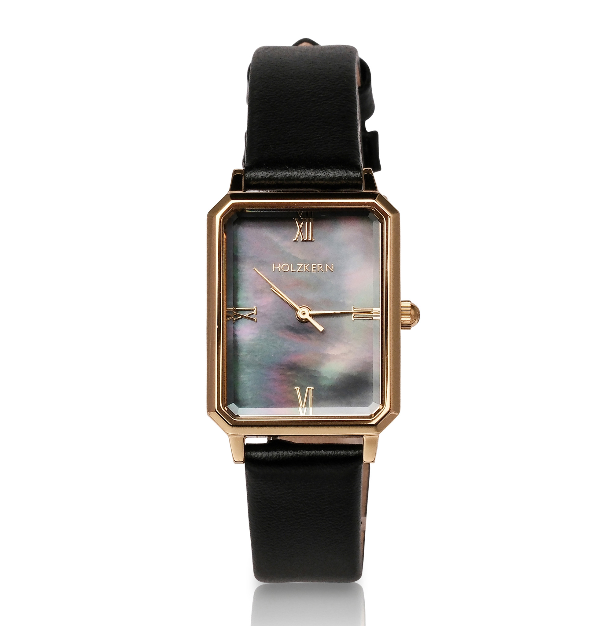 Elegance at its finest: The Auctoritas combines a black mother-of-pearl dial with a slim case made of matte gold stainless steel.
