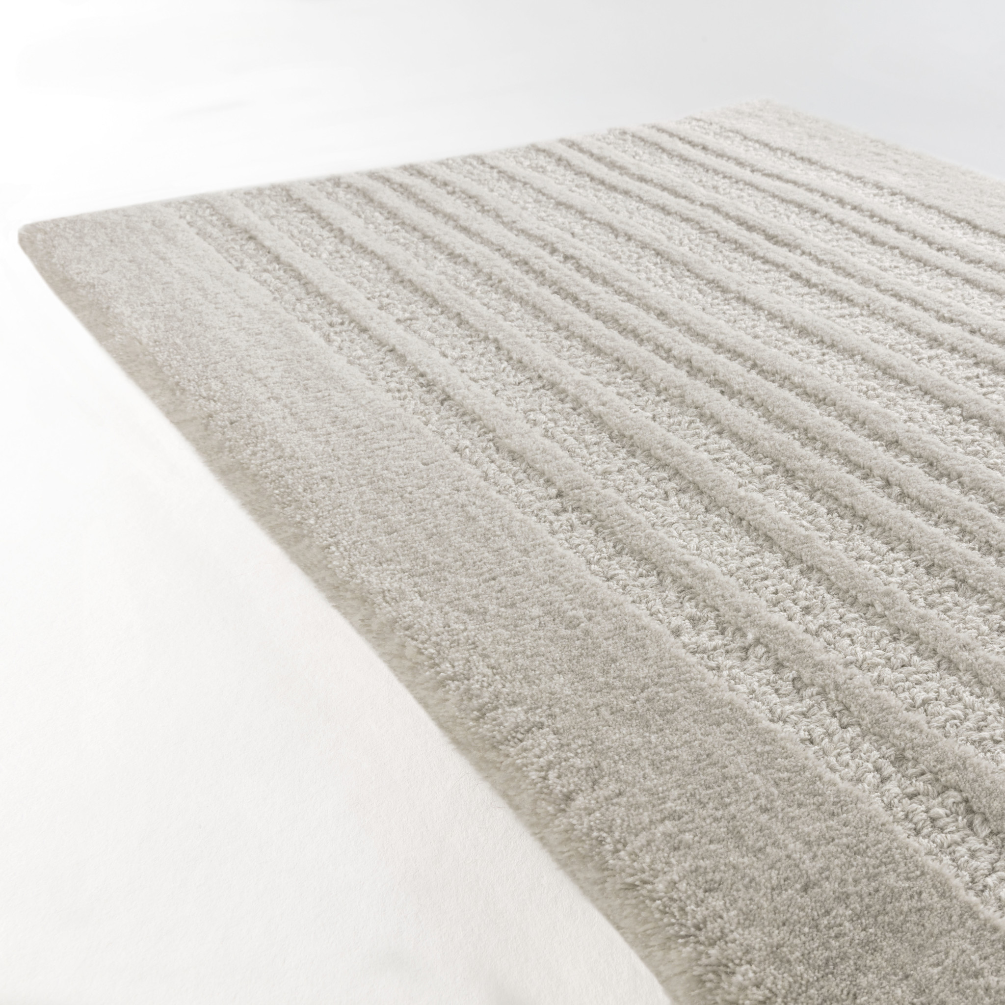 Each rug is woven with precision and finished by hand in Belgium. The Superfino Rug combines functional durability with visual restraint—perfect for residential or contract environments.