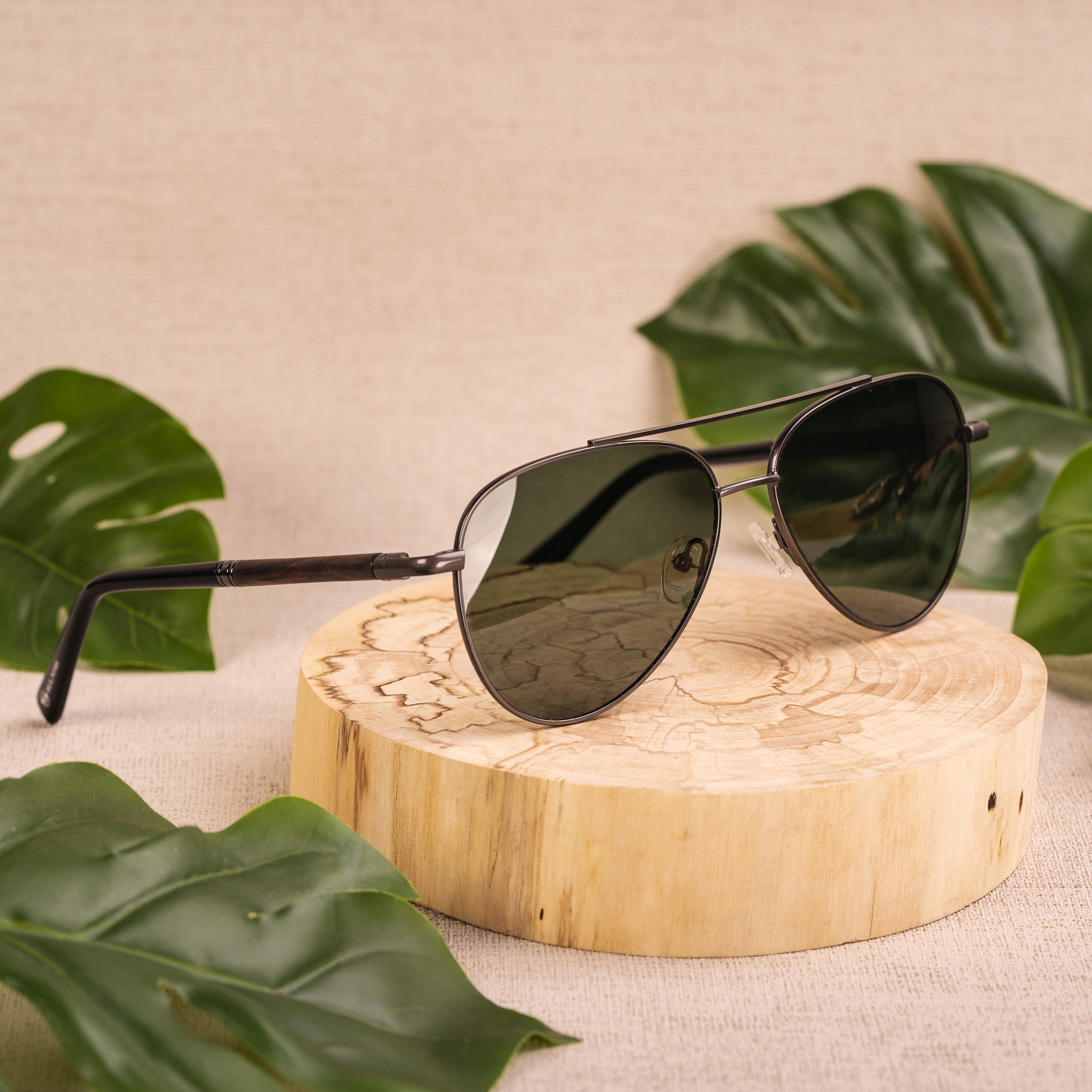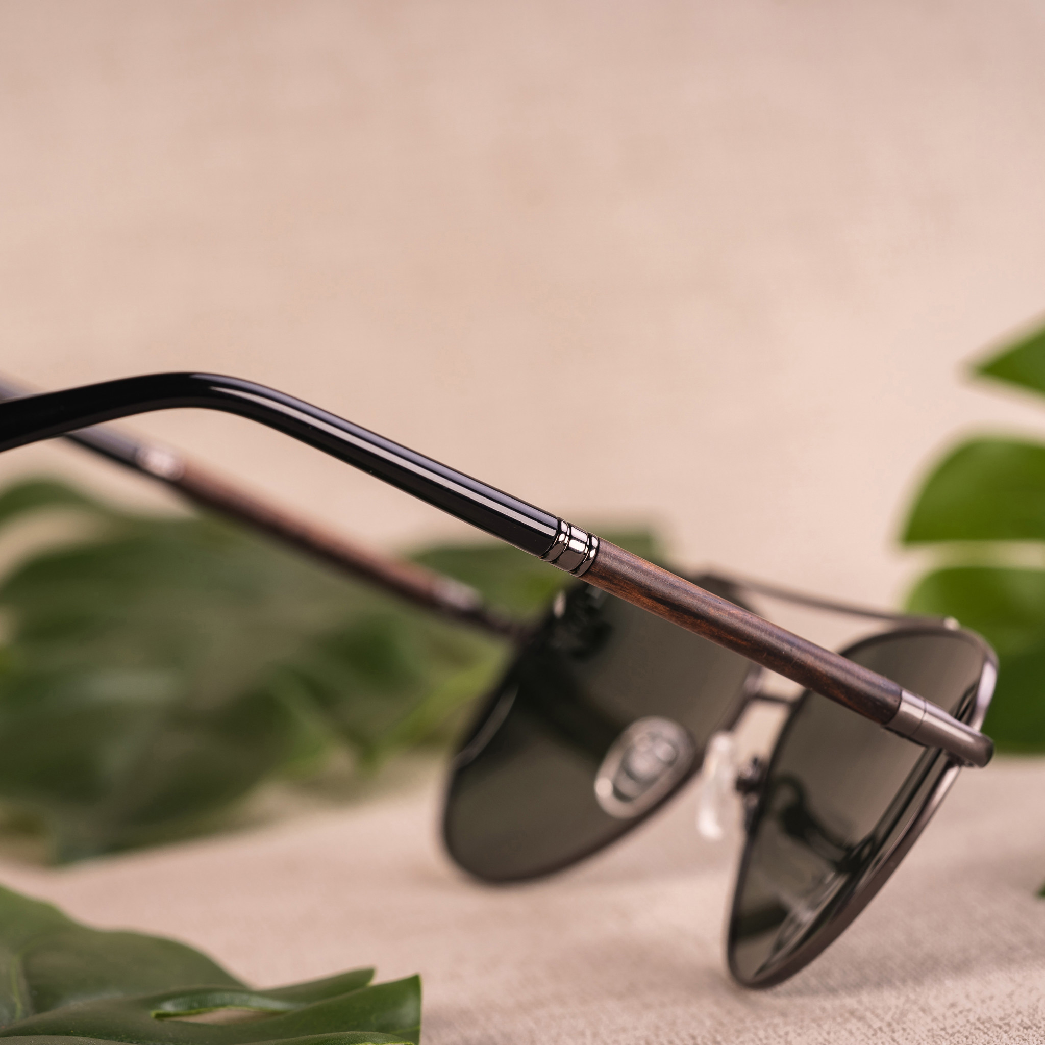 The Badass II embodies strength, confidence, and bold elegance. This pair of sunglasses combines the deep, natural character of leadwood with a robust frame of antique silver stainless steel. The fusion of organic warmth and modern design creates a striking statement – lightweight, durable, and ready for every adventure.