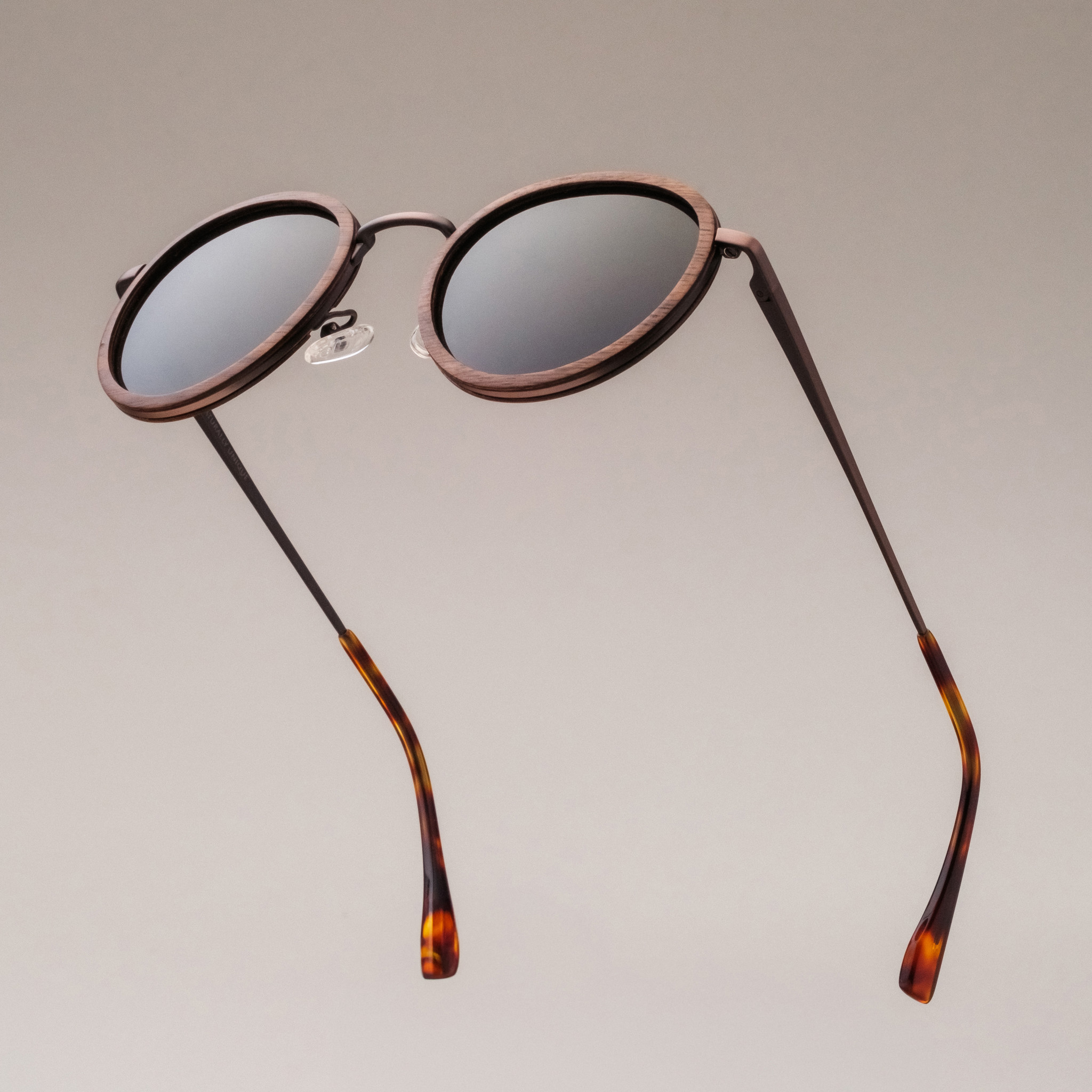 The Curious : Elegant sunglasses blending natural walnut with sleek silver—crafted for bold explorers.