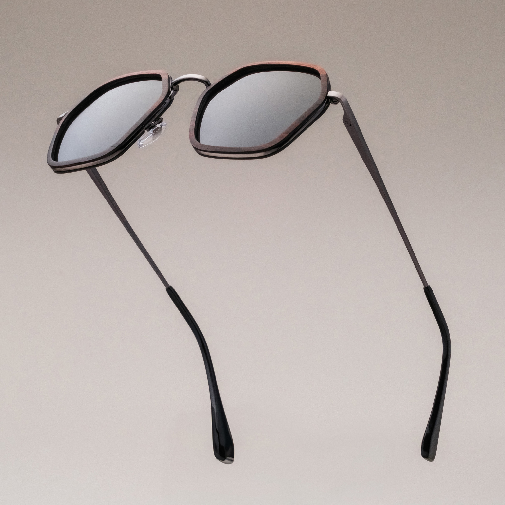 The Curious : Elegant sunglasses blending natural walnut with sleek silver—crafted for bold explorers.