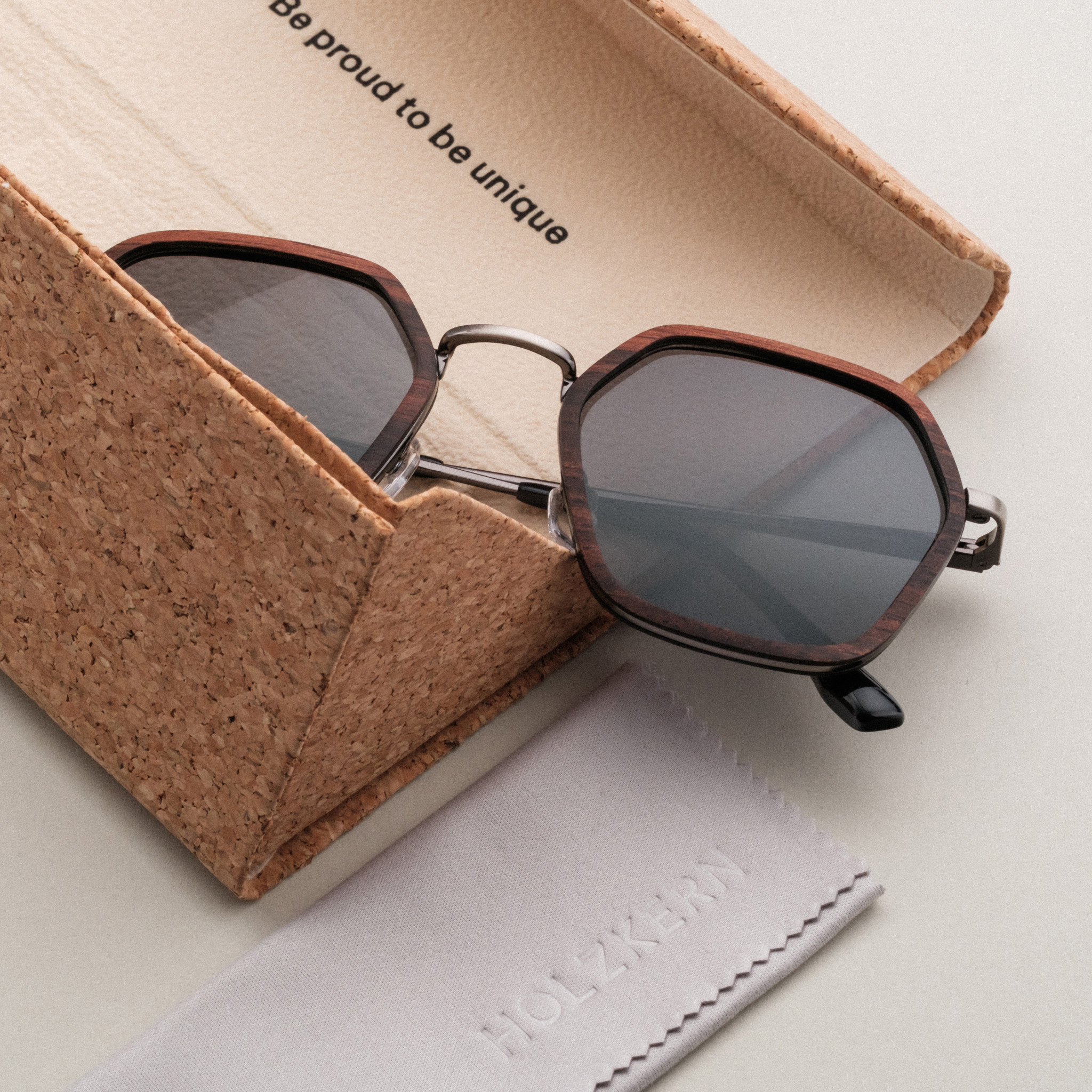 The Sincere embodies calmness, authenticity, and understated elegance. Crafted from dark-toned leadwood and stainless steel in antique silver, this pair of sunglasses is a reliable companion for everyday life – honest in its appearance, striking in its design, and true in its essence.